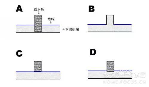 A.鋪地磚的時候留一條槽,放入擋水條;