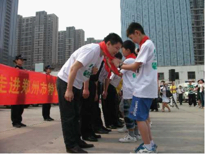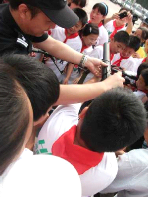 5月31日上午,鄭州市公安局特警支隊大院里熱鬧非凡,35名小學(xué)生成為這里的特殊客人。在特警支隊副隊長弋遂勤的帶領(lǐng)下,大家興致勃勃地逐一體驗了各類防暴器械,觀看武警戰(zhàn)士的絕技表演。特警四大隊演示的警棍盾牌術(shù)剛毅雄壯,特警新警大隊的新式擒敵拳颯爽英姿,當(dāng)備戰(zhàn)“2012全國公安特警比武”的特警猛士一口氣搬起二百斤的巨型輪胎時,大家不由得發(fā)出一陣驚呼!