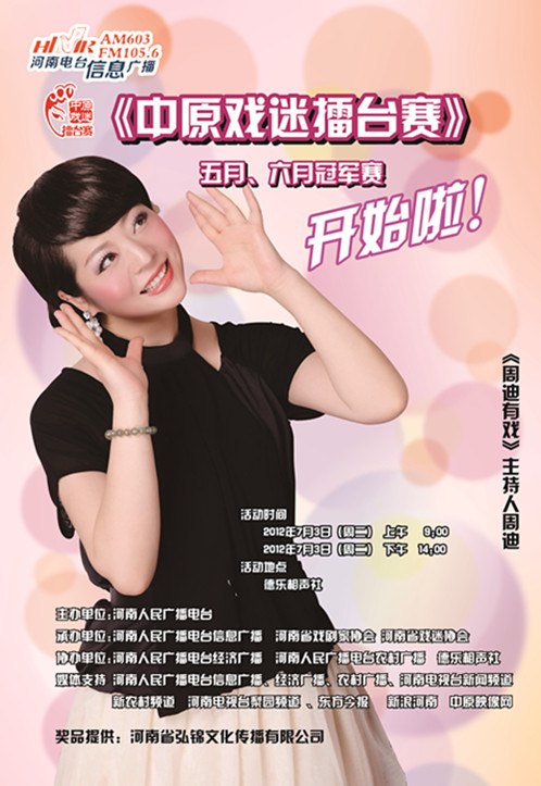 今天(7月3日)09:00-12:00、14:00-17:00,“中原戲迷擂臺(tái)賽”五月、六月月冠軍賽將在鄭州德樂相聲社開賽。河南電視臺(tái)九頻道12:19(明天07:00)《播報(bào)河南》、河南電視臺(tái)新聞?lì)l道16:00《中原播報(bào)》、明天出版的《東方今報(bào)》將對(duì)本次比賽進(jìn)行報(bào)道。