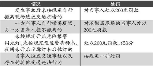 即日起,交管部門將依法加強(qiáng)對(duì)“發(fā)生輕微交通事故后,未按照規(guī)定自行撤離現(xiàn)場(chǎng)”的交通違法行為的處罰力度,輕微事故發(fā)生后撤離不及時(shí)致堵將被罰款200元,如果未按規(guī)定開啟危險(xiǎn)報(bào)警閃光燈等,將處以200元罰款,記3分。交管部門表示,對(duì)應(yīng)挪車不挪車的事故當(dāng)事人“當(dāng)罰必罰”。