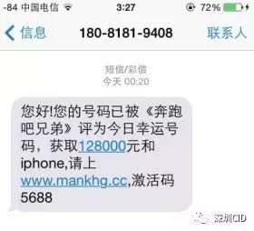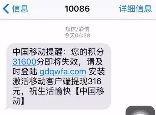喏,下面這條短信就是詐騙短信