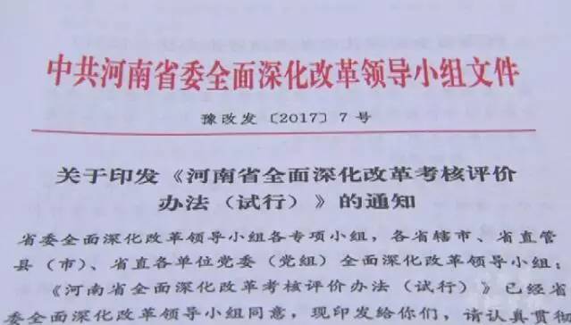 今年7月《河南省全面深化改革考核評價辦法》正式出臺,表揚先進、懲戒落后、追效問責,考核評價辦法成為一支有力的“指揮棒”。