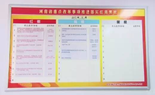 這張省委改革領導小組辦公室內的“紅青黑”榜單,生動記錄了各地改革任務的月度推進落實情況。