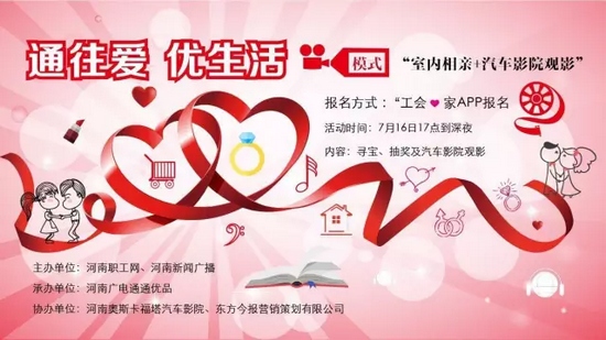 河南新聞廣播聯(lián)合河南省總工會職工網(wǎng)、河南廣電通通優(yōu)品、河南奧斯卡福塔汽車影院等多家單位,為廣大聽眾、單身職工舉辦一期攜手憧憬新生活,體驗(yàn)高品質(zhì)生活為主題的相親活動——“通往愛,優(yōu)生活”。
