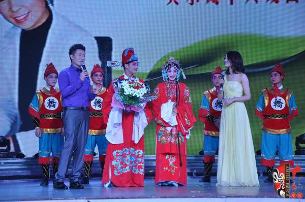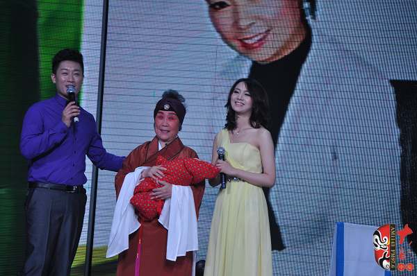 在6月16日舉辦的關(guān)小鳳個(gè)人戲曲專場中,關(guān)小鳳之女、24歲的張聰表演了豫劇《情斷狀元樓》“打神告廟”及《抬花轎》的“坐轎”兩折戲。畢業(yè)于河南省藝校的張聰現(xiàn)場表演稍顯稚嫩,但也獲得了觀眾的熱情鼓勵。張聰在接受記者采訪時(shí)說,自己戲校畢業(yè)之后到了福建省一閩劇團(tuán)工作,已經(jīng)有五、六年未接觸豫劇了。媽媽歷經(jīng)艱辛把自己帶大,特別不容易,這次為了支持媽媽的專場演出,她專程回河南、花十天時(shí)間趕排了兩折戲……在張聰表演完《抬花轎》的“坐轎”一折,一位身穿狀元紅袍、手捧鮮花、操南方口音的英俊小伙上臺向“周鳳蓮”求婚,經(jīng)張聰介紹,觀眾才豁然明白,英俊小伙乃她的老公,結(jié)婚時(shí),媽媽關(guān)小鳳因?yàn)槊τ诠ぷ魑茨軈⒓?,借此現(xiàn)場要補(bǔ)行跪拜大禮,以感謝母親的養(yǎng)育之恩。此情此景,讓現(xiàn)場不少觀眾為之動容。