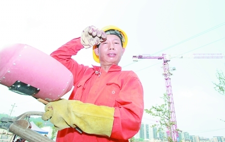 在高溫下工作的工人們 記者 鄒飛 攝