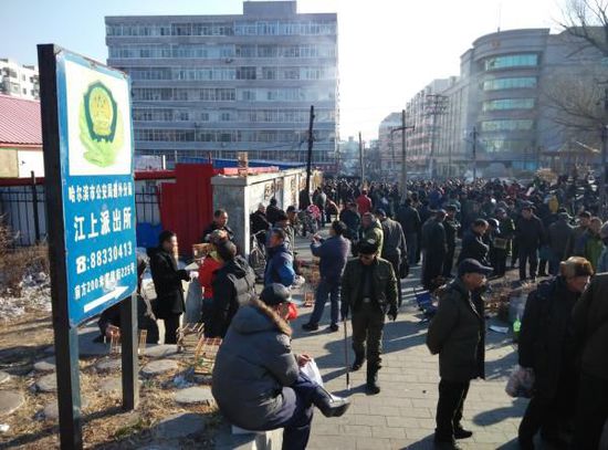 哈爾濱雙城區(qū)文昌大街附近的一個(gè)窄巷的連片低矮平房,是當(dāng)?shù)刎滧B(niǎo)的“集市”,其中至少有十家販賣(mài)鳥(niǎo)和各種捕鳥(niǎo)工具的店鋪,這些門(mén)房外大多沒(méi)有招牌,有的也是食雜店、熟食店的牌匾,房子里面卻塞滿(mǎn)了各種捕鳥(niǎo)商品,鳥(niǎo)籠里裝著不同種類(lèi)的鳥(niǎo)雀。
