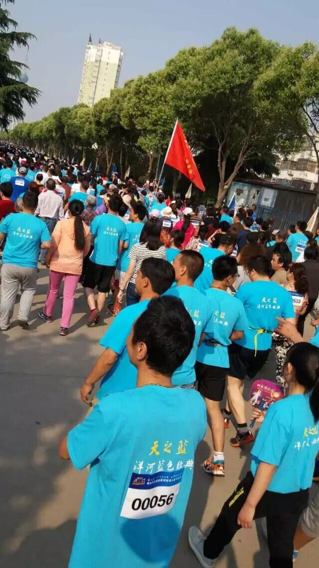5月22日早上7:30,在洛浦公園東大門廣場聚集了從各地趕來的身著運動裝的人們,來參加“尋找天之藍大型公益萬人長跑”活動,都市頻道的三位當家主持人領跑。