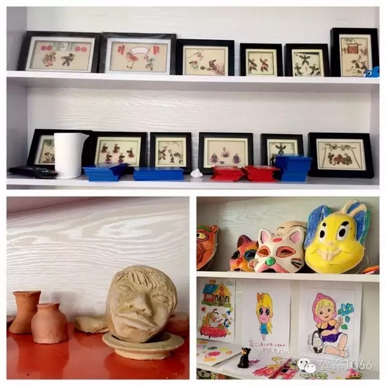 看著孩子們手工制作的這些臉譜、陶藝、十字繡等物件,