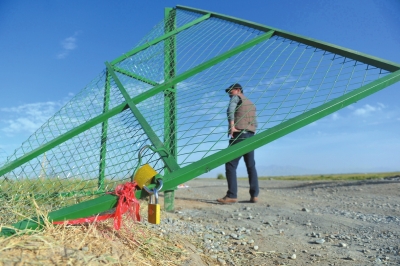 牧民新建的草場(chǎng)圍欄大門(mén)被盜采者破壞掀翻。牧民新建的草場(chǎng)圍欄大門(mén)被盜采者破壞掀翻。