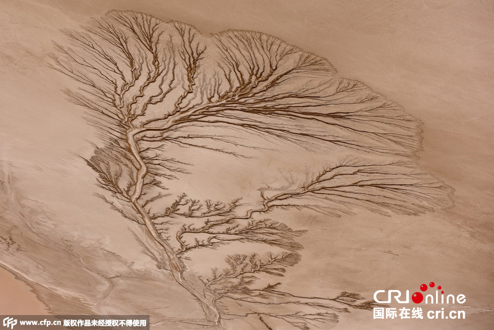 2015年6月5日消息,美國(guó)加州莫哈韋沙漠,這些照片看起來像是拍了森林中的一排樹,但事實(shí)上它們是干涸湖底的紋路。這種紋路足足綿延3英里。飛行教員Jassen Todorov在3000英尺的空中拍下了這組照片。圖片來源:CFP