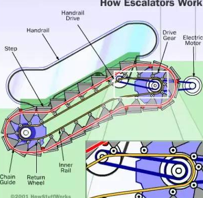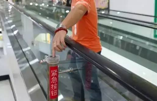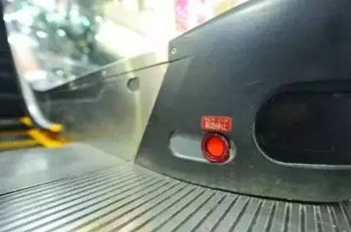 萬(wàn)一乘坐電梯出事,你必須了解無(wú)論上的方向還是下的方向,手扶電梯的一側(cè)下方都有一個(gè)紅色的緊急停止按鈕。