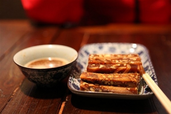 北京人的年飯里,有一道不得不提的傳統(tǒng)菜品——“豆兒醬”,這道菜對(duì)于老北京人來(lái)說(shuō)還是家喻戶曉的?!岸箖横u”是一種由肉皮、豆腐干、黃豆、青豆、水芥做成的涼菜,清爽可口,用來(lái)佐酒開(kāi)胃,再合適不過(guò)了。