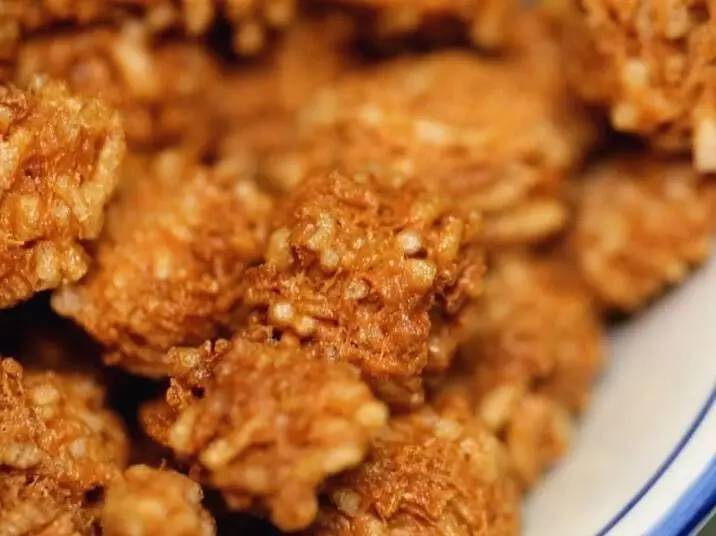 如果評(píng)選最難忘的洛陽美食,水席中的焦炸丸子應(yīng)該名列前茅。粉條拌上面粉捏成的素丸子,用小火炸的里外酥脆,撈出來時(shí)表面金黃還冒著熱氣泛著油花。
